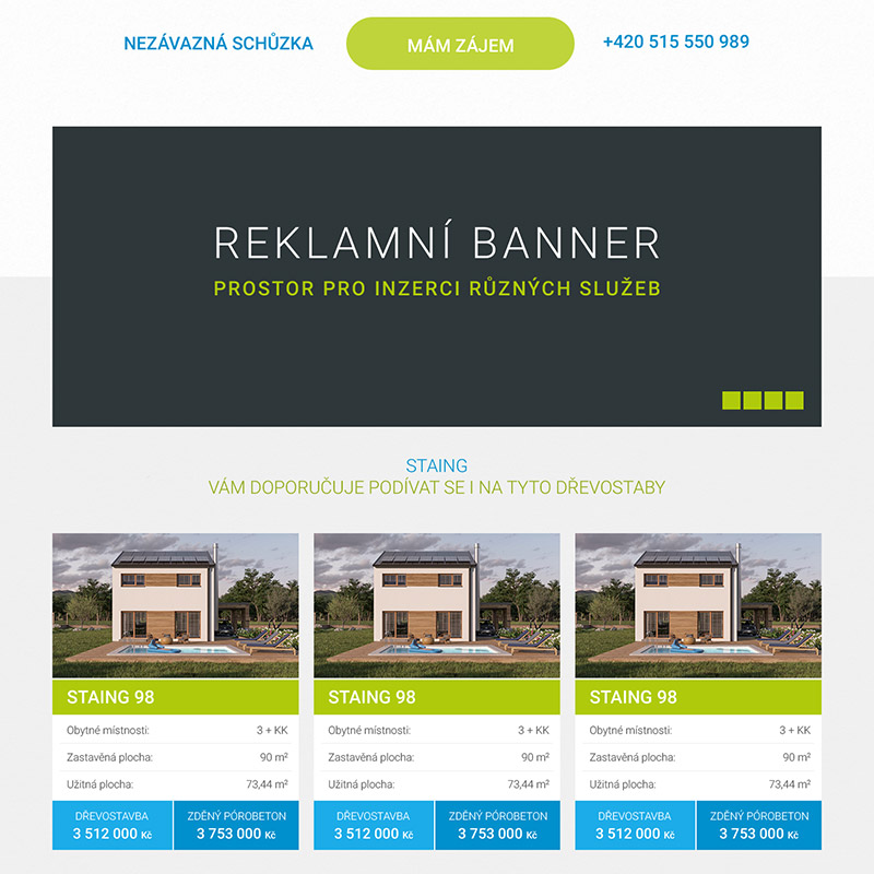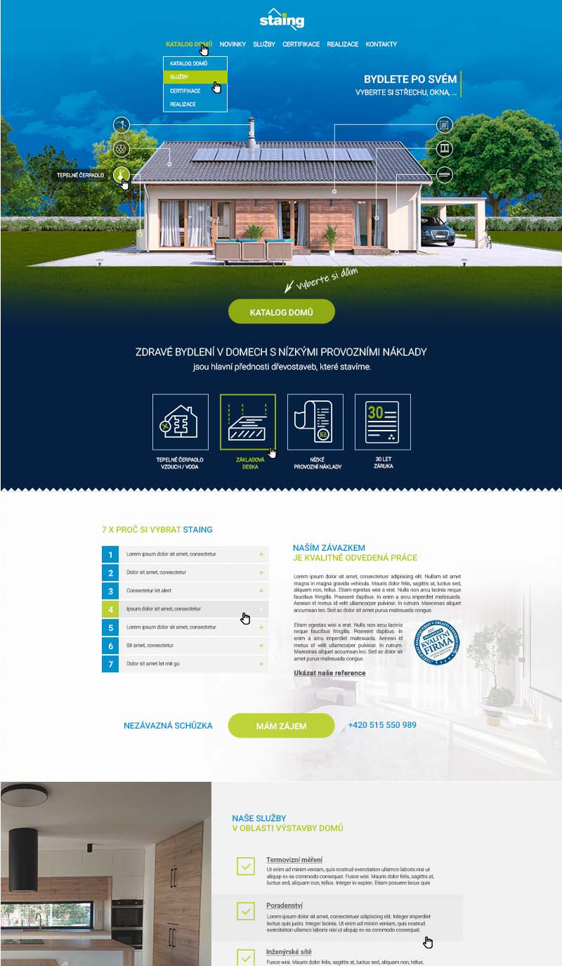 Do návrhu jsme začlenili grafické prvky, jako jsou obrázky, ikony a odsouhlasené barvy. Důležité bylo, aby všechny tyto prvky odpovídaly korporátní identitě firmy Staing a vytvářely jednotný vizuální dojem.