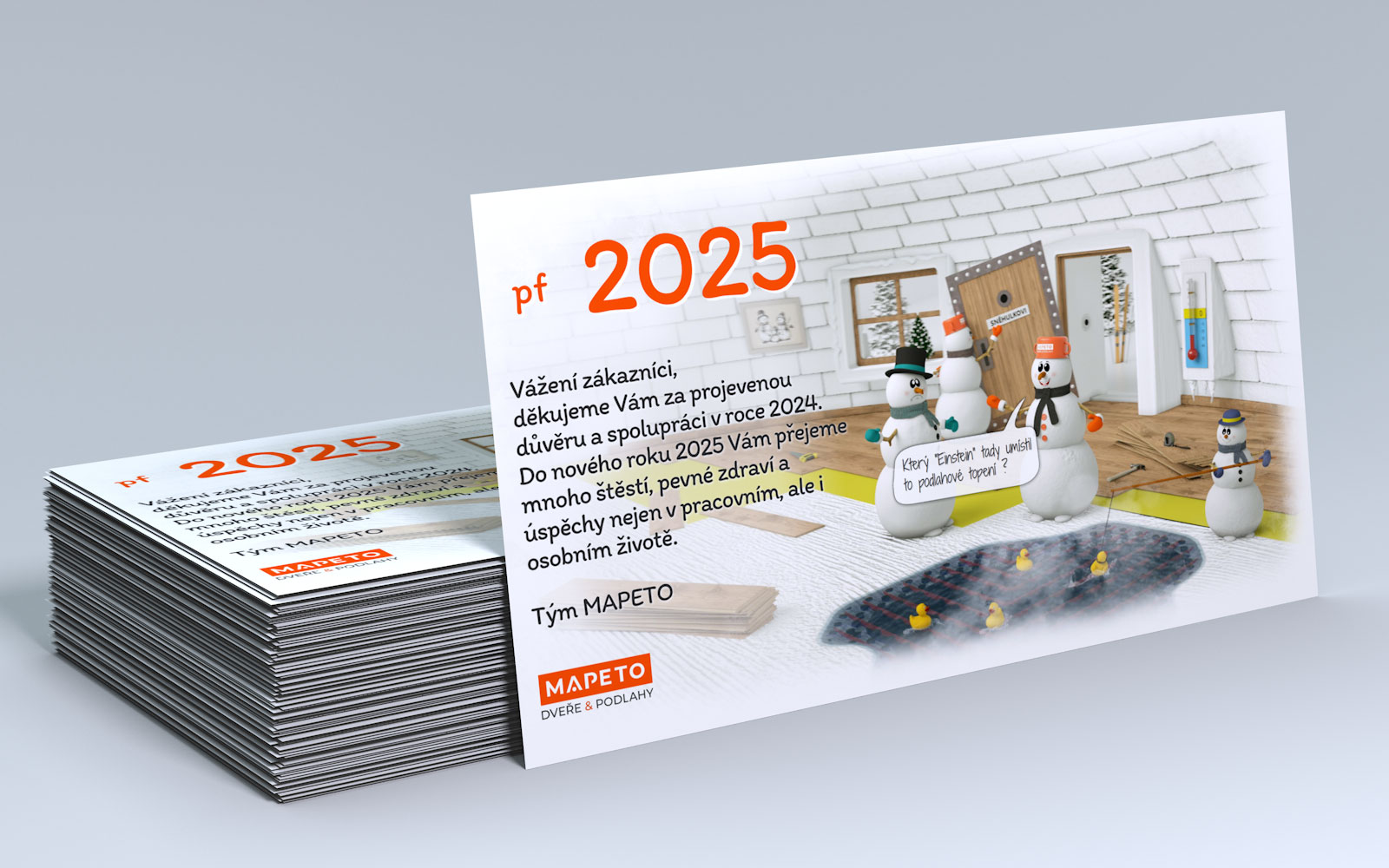 Pro zákazníky umíme vytvořit i originální vánoční PF. Navrhnuté novoročenky jsou vždy jedinečná. Novoročenky tvoříme jak pro elektronickou distribucu, tak i klasické papírové v různých formátech.