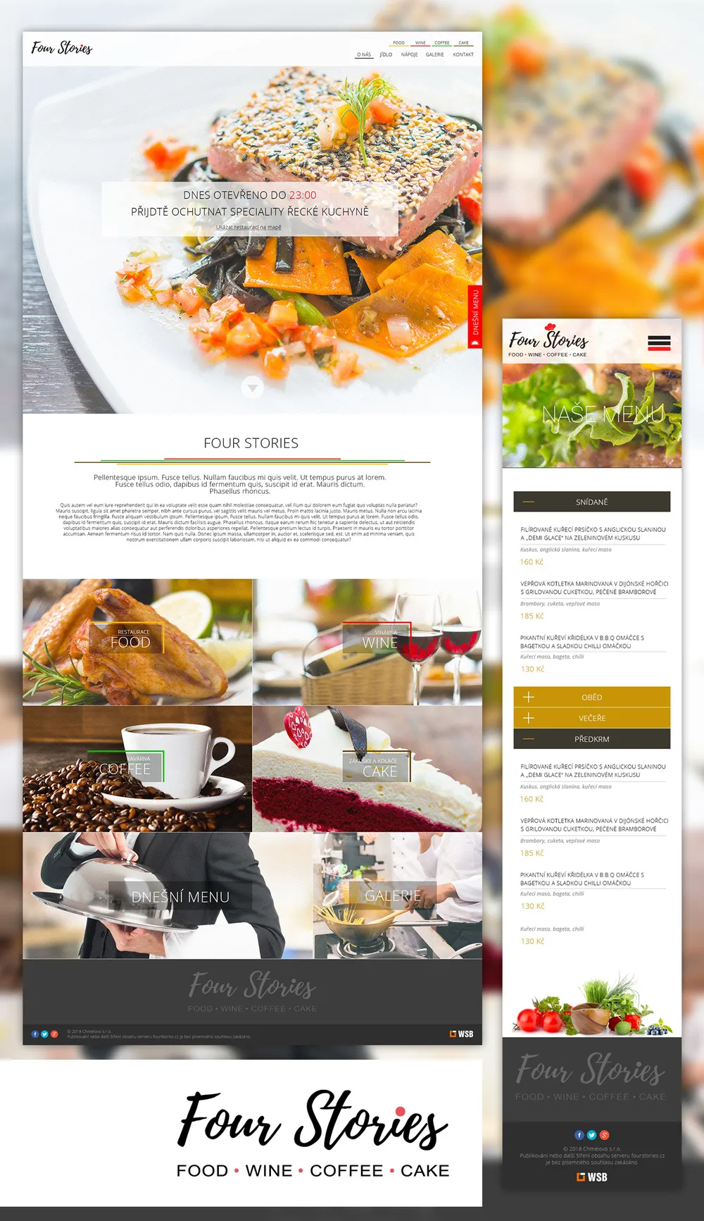 Ukázka grafik webových stránek. Všechny návrhy jsou tvořeny na míru dle potřeb zákazníka, originální design. Grafika je tvořena tak aby se web dobře přizpůsobil různým uhlopříčkám (responzivita). Umíme navrhnout jak malé či středně velké weby tak grafiku pro sofistikované e-shopy.
